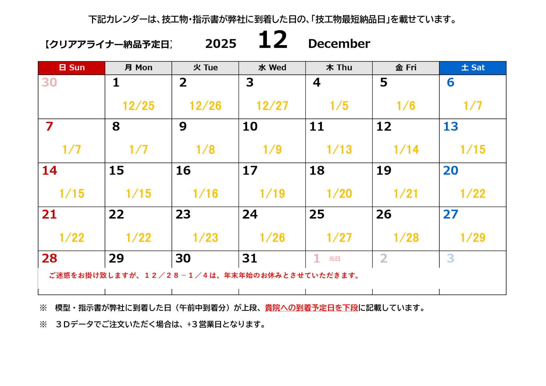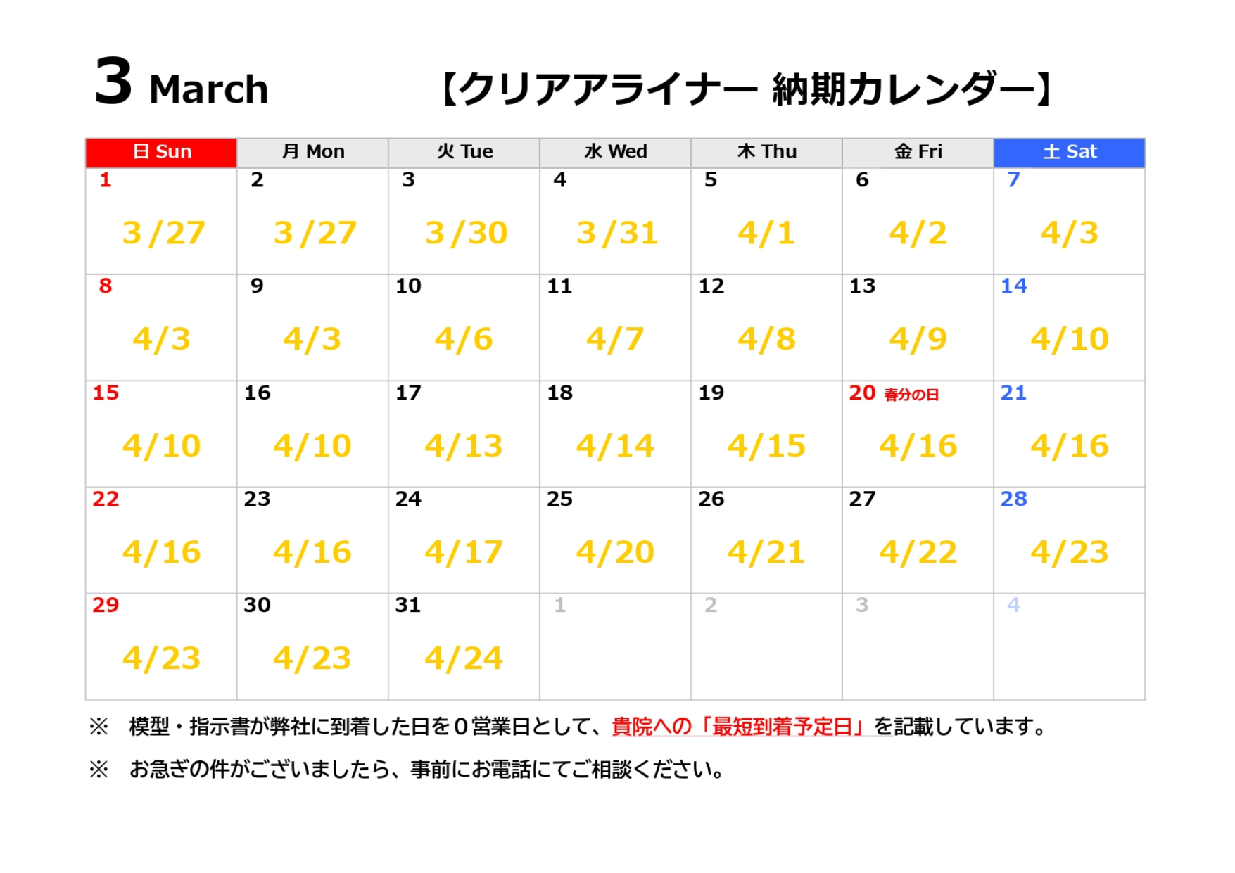 ホーム 取扱い技工物 リンガル≪納期≫ 一般矯正装置≪納期≫ 3Dオーダーサイト 指示書・料金表ダウンロード 会社案内 インフォメーション Q&A 採用 お客様の声 お問い合わせ 3Dオーダーサイト 指示書・料金表ダウンロード 048-956-0151 お問い合わせ 一般矯正装置・クリアアライナー ホーム 取扱い技工物 一般矯正装置・クリアアライナー 一般矯正装置 納期カレンダー 印刷用ページを表示 印刷用ページを表示 クリアアライナー 納期カレンダー 印刷用ページを表示 印刷用ページを表示 犬歯間保定装置 急速拡大装置 ホーレーリテーナー TPA ナンス QH 床型装置 タングクリブ 犬歯間保定装置 急速拡大装置 ホーレーリテーナー TPA ナンス QH 床型装置 タングクリブ お問い合わせ